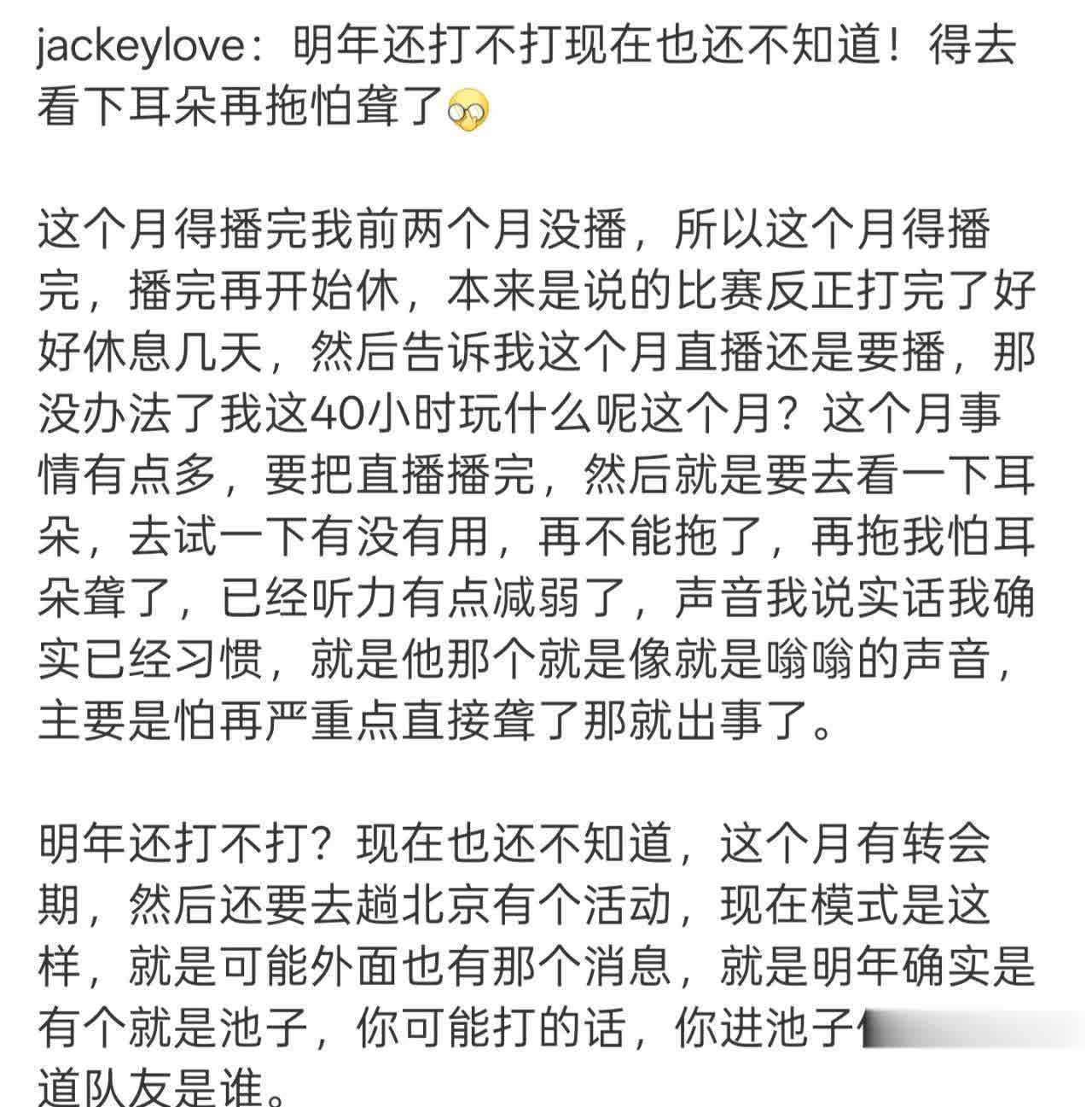 TES选手Jackeylove自曝耳鸣加重,明年参赛情况未知